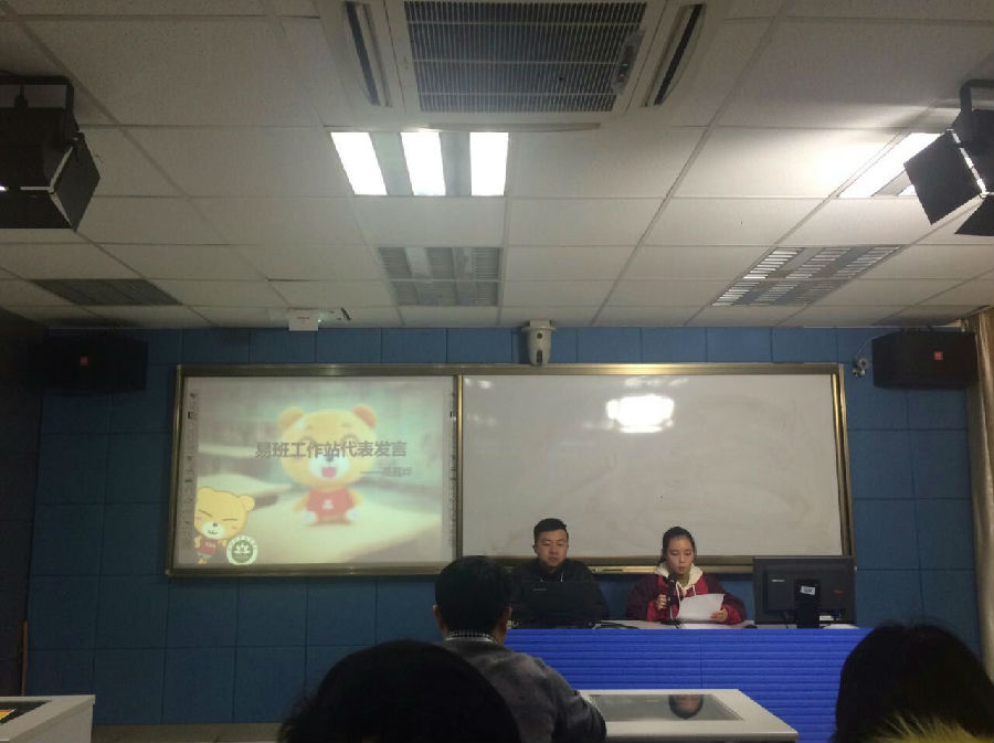 然后分别由易班工作站代表高嘉烨与马思雯发言。