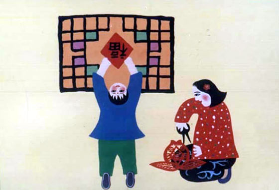 在贴春联的同时,一些人家要在屋门上、墙壁上、门楣上贴上大大小小的“福”字。春节贴“福”字,是我国汉族民间由来已久的风俗。“福”字指福气、福运,寄托了人们对幸福生活的向往,对美好未来的祝愿。为了更充分地体现这种向往和祝愿,有的人干脆将“福”字倒过来贴,表示“幸福已到”“福气已到”。汉族民间还有将“福”字精描细做成各种图案的,图案有寿星、寿桃、鲤鱼跳龙门、五谷丰登、龙凤呈祥等。