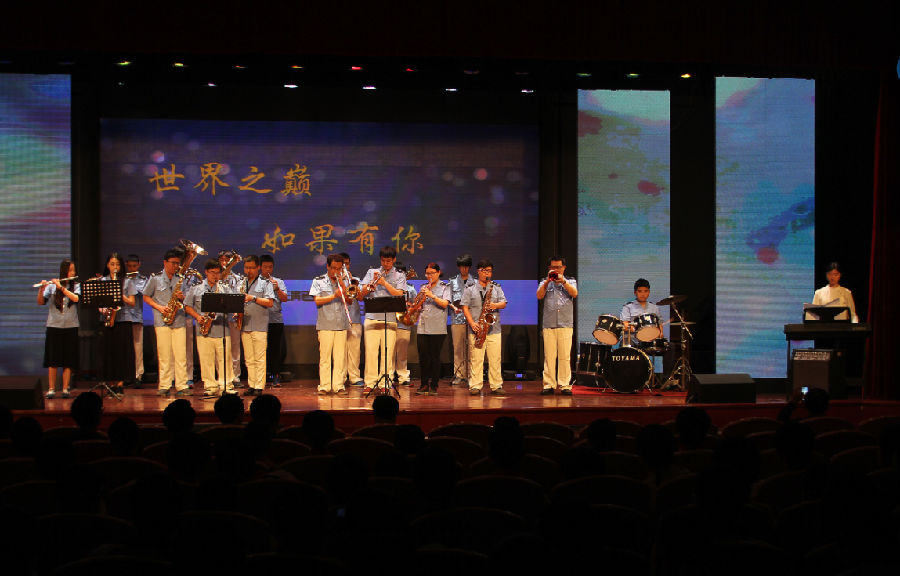 随后,进行了艺术节师生文艺汇演,首先由树长根老师带领的学院、校师生管乐队表演了两首器乐合奏《世界之巅》,乐曲旋律格外亲切自然,表达人们对生命的热爱,《如果有你》是日本动漫片名侦探柯南主题曲、具有点爵士风格的乐曲。彭郅洁老师用亲切感人的亲身感受演讲了《心灵的塑造师》,朱建芳老师声情并茂的女声独唱:《爱在天堂》和委婉的京腔《梨花颂》征服了全场师生,王柳丽老师指导的高职学生旗袍秀:伴随着《梅花三弄》音乐的悠然响起,身着红色旗袍的女队员缓缓登场,宛如山岭上迎风盛开的红梅,鲜艳夺目。藏青色中山装冲入眼帘,似红梅之枝,更显梅之鲜活,神摇目夺,让人流连忘返。李宇翔、傅一等五位中职同学男声小合唱《梨花又开放》柔中带刚、赢得了师生们的热烈掌声,最后高职学生大合唱《歌唱祖国》展示了广大师生的健康活力,将闭幕式的气氛推向了高潮,主持人宣布“和谐校园文化之美” 第七届校园文化艺术节闭幕。