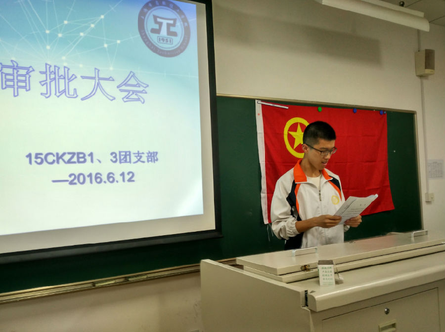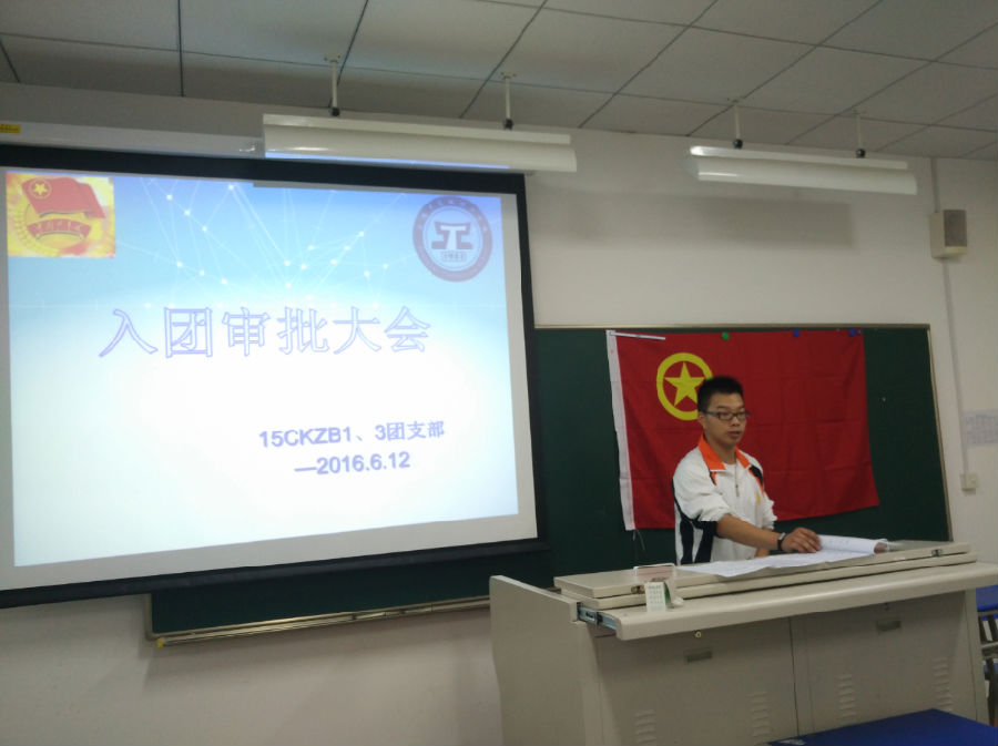 首先,分别由15CKZB13丁云卿、徐晨同学上台宣读入团志愿书,随后分别由班团支部组织委员伍振宇、宣传委员丁梦安同学宣读意见书,姚千辰、潘泓谊、何毅阳等入团介绍人宣读意见书,最后由班级团支书施煜同学组织投票,成功入选的同学宣读了自己对未来的规划与期望。