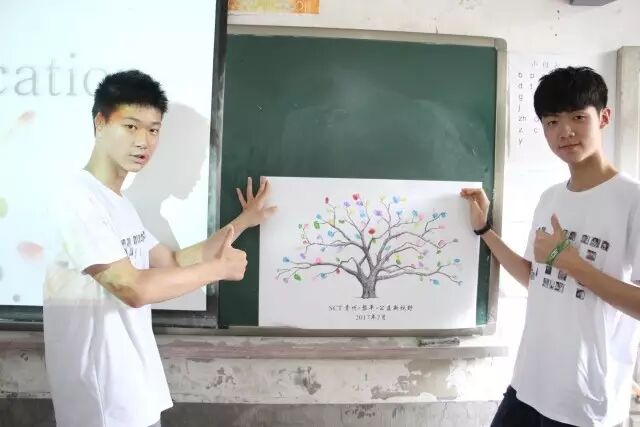 第二堂“Best Wishes to U”,我们和小朋友们一起折幸运星,制作贺卡。看着那些纯真质朴的孩子们,在贺卡上各自写下他们对家人或老师的感谢。他们表情严肃,写下七扭八歪但感情真挚的话语,所有人的心都被感触到了。触动最深的一句话出自一个小男孩。只见他画了个黑色的小太阳,很是好笑,但他却解释道:“如果没有妈妈,太阳就会变成黑色。”是啊!这里的孩子生活条件和教育条件虽不如我们,但他们对知识的渴求,对生活的感恩,却远大于我们这群城里的孩子。