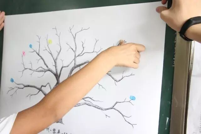 两节课的了解与相处,让所有人都开始珍惜这短暂的时光。我们也为校长与孩子们带去了一份独一无二,意义非凡的礼物——一副未装裱的公益树。所以接下里的环节便是由张亦扬小老师组织的“Growing Tree Making”。所有的孩子们及此行的老师和同学,都在枝丫上留下了自己独一无二的指纹,不同的颜色,缤纷地装饰了公益树,让它变得鲜活,变得生动。这颗生命树意义非凡,代表着我们生命不止,公益之心不停歇。