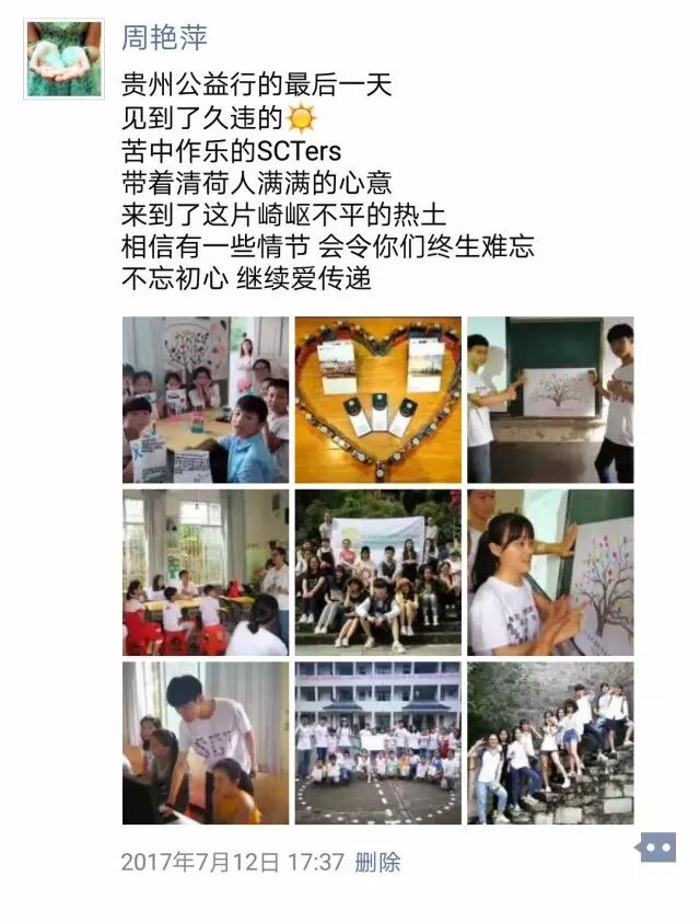 2017年7月9日,我校SCT十五位学生代表及五位老师踏着清晨的第一缕阳光,浩浩荡荡地开始了为期四天的贵州黎平公益行。正如范荣老师期待的那样:“那山那水那孩童,此山此景此童真,都将在你们接地气的脚踏实地中锤炼。航拍的不是苦难,记录的不是脚步,而是心境。”