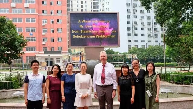 两位同学热情地带领Mr. Uwe Burghardt参观了职教源的历史。