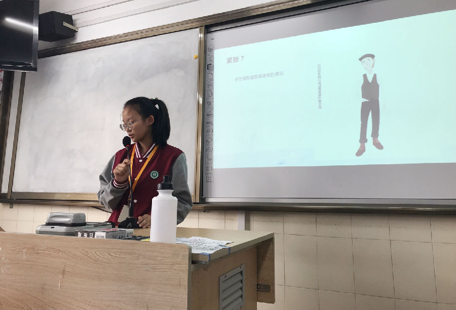 本周的班会课由心理委员汤岩馨同学主持,汤岩馨同学通过精彩的主持和有趣的小游戏为同学们介绍了调节心情的方法。给大家带来了一节轻松愉快的班会课。一节心理课可以帮助我们解决心理问题,以积极的心态面对生活中不顺心的事情。更好地了解到自己性格的特点,学会理解别人,包容别人,让同学之前的相处能够和睦友善。有了对自己更好地认知,能让增添更多乐趣。