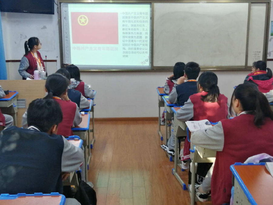利用早读的时间,团支部书记为我们讲述了关于进博会的一些内容,包括进博会的开展时间,展品和主导人物等等,还科普了关于共青团的一些知识,包括团徽,团旗和由来等等,大家都认真听讲,积极配合团支部书记