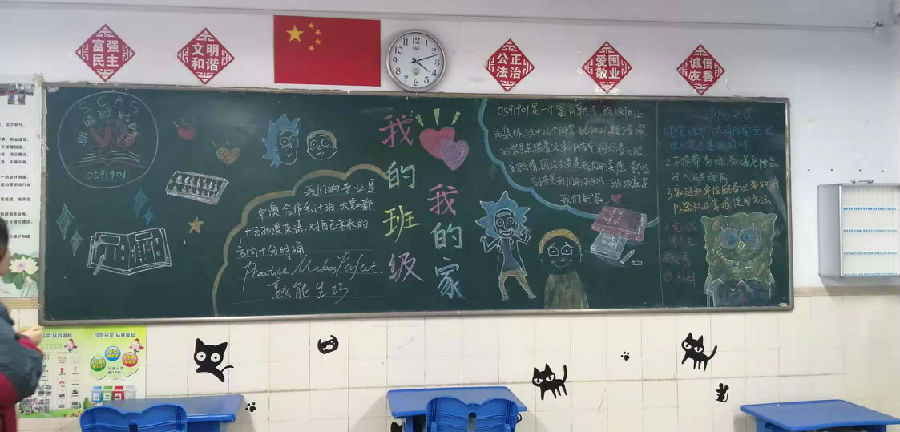 我们的班级板报也画的十分好看,在宣传委员和其他一些同学的努力下,我们的黑板报十分俏皮可爱,也富有美感。