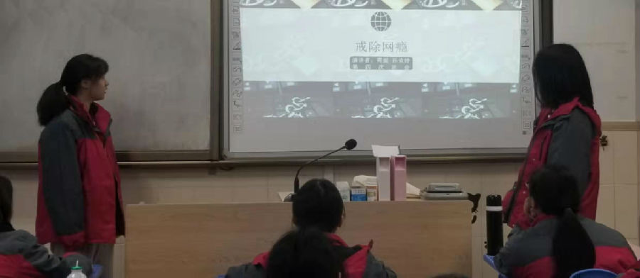 这个月的班会课,我们负责演讲的小组给我们带来的主题是网瘾。