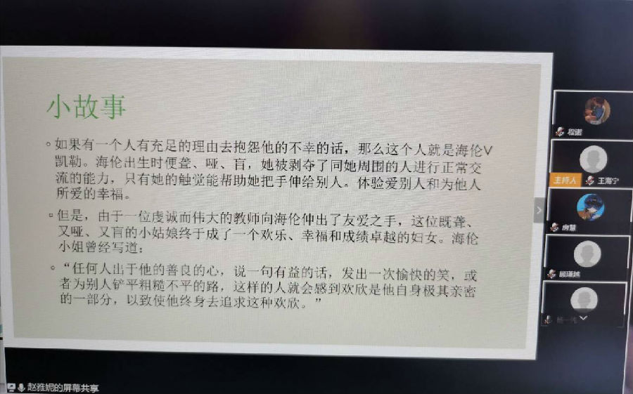 观看完视频,叫了几名同学太分享自己的快乐,比如听朋友八卦,和朋友一起出去玩一起吃等等等等
