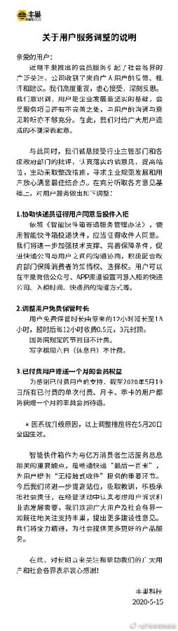 我的想法是:这其中涉及到的有丰巢、快递公司、快递员和顾客。丰巢于快递公司是合作关系,于快递员和顾客......这还真不太好说,因为丰巢对这两类人都进行了收费,我看过一个某通快递员发的帖子,丰巢每个件会收他0.3-0.4元,每个月他会给丰巢交2500元的管理费。那快递公司在这中间是干什么的呢?啊,他们在丰巢有股份啊原来,那就没什么好说的了。