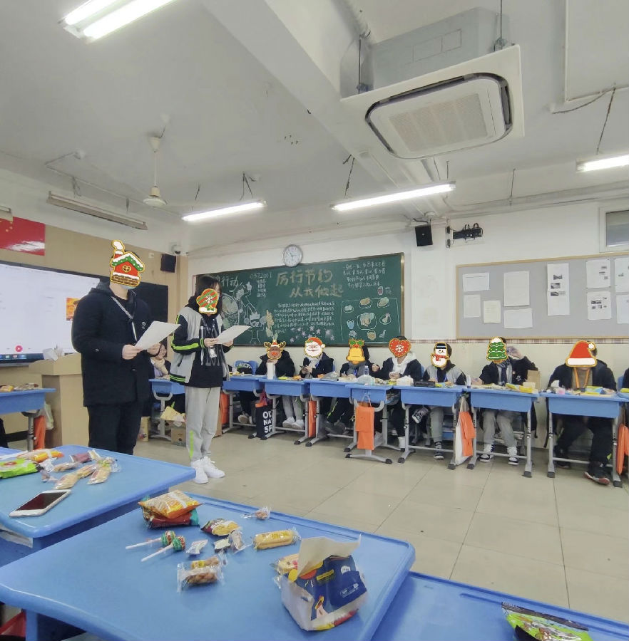 本周四下午,我班组织了一场迎新元旦班会,由班长与副班长进行活动的主持。