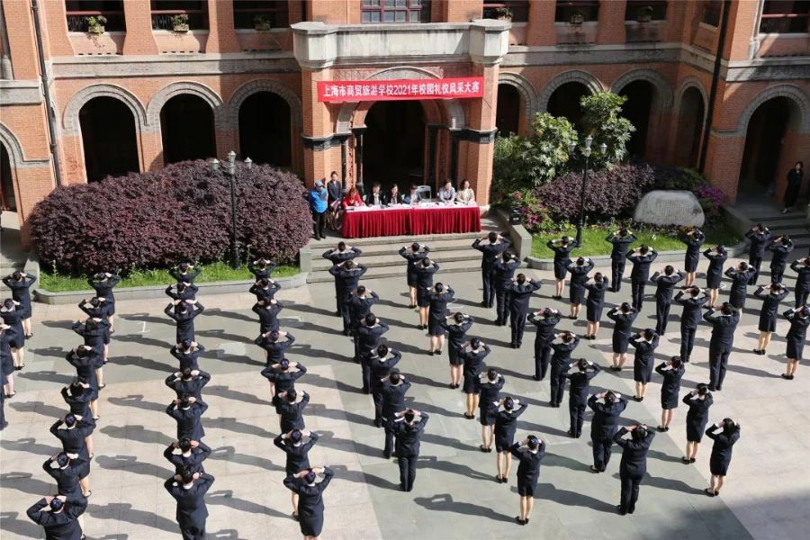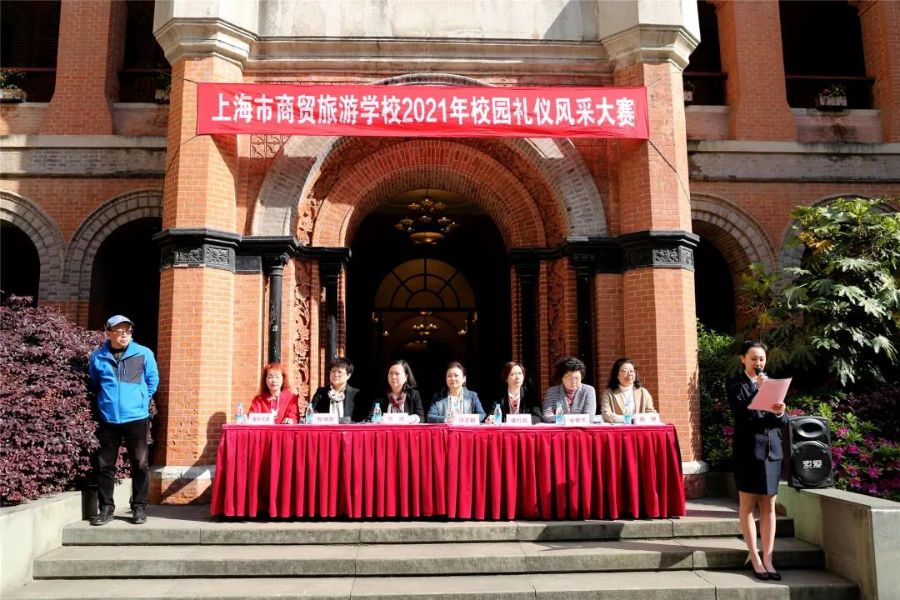 4月12日和19日, 43个班级分别在浦东南路1548号球类馆和贵州路101号操场上进行会操展示,“和美”礼仪操比赛正式拉开帷幕。担任比赛的评委有学校党总支副书记兼副校长汪志颖、分管德育的副校长龚红兵、分管教学的副校长范瑾、招生就业办主任金蕾萍、德育处主任包凌岚、航空旅游专业部主任傅瑜、商贸财经专业部主任周健老师、校艺术总监乌圆晓老师,还两个专业部都特邀两位家委会代表观摩比赛。