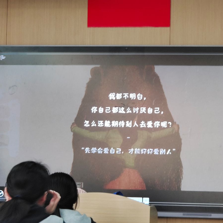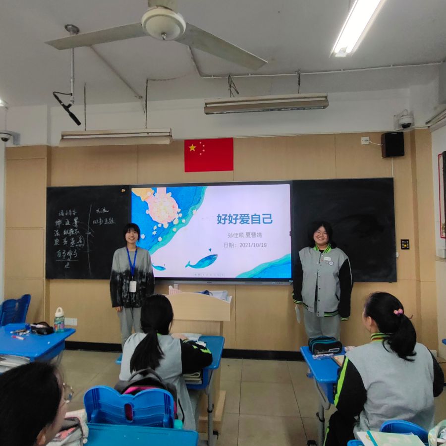 上周二的心理班会课上,在心理委员夏曹婧和宣传委员孙佳颖的积极组织下召开了“好好爱自己”的主题班会活动。