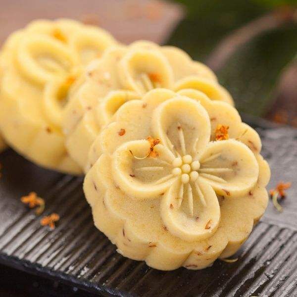 中国的特色小吃历史悠久,风味各异,品种繁多。面点小吃的历史可上溯到新石器石代,当时已有石磨,可加工面粉,做成粉状食品。到了春秋战国时期,已出现油炸及蒸制的面点,如蜜饵、酏食、糁食等。此后,随着炊具和灶具的改进,中国面点小吃的原料、制法、品种日益丰富。出现许多大众化风味小吃。如北方的饺子、面条、拉面、煎饼、汤圆等;南方的烧麦、春卷、粽子、圆宵、油条等。此外,各地依其物产及民俗风情,又演化出许多具有浓郁地方特色的风味小吃。但唯有桂花糕深入我心。