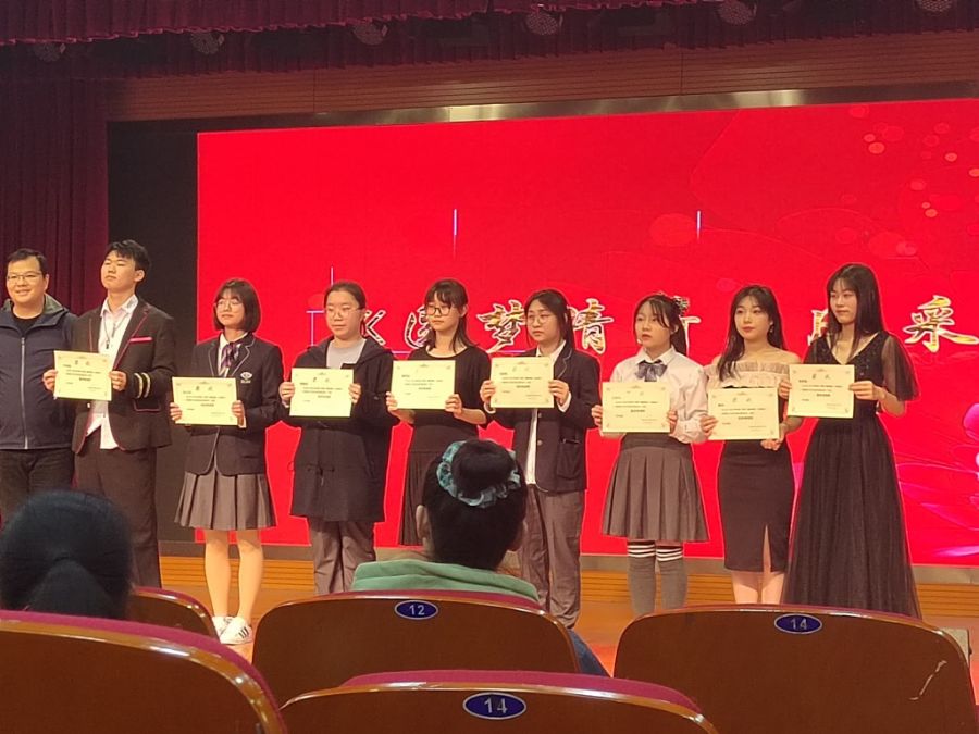 ;值得表扬的是 ;我们班的童瑶同学一路过五关斩六将闯到最终比赛。从初赛的修炼爱情到最终比赛的交换余生,每一次她都用心去唱好每一首歌,服装也特别的到位,也拿到了理想的名次。