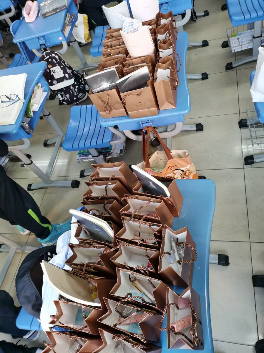 在2021年的最后一天,我们班级利用中午的时候,进行了一个交换礼物的活动。大家利用班费购买了很多的文聚具糖果,度过了一个很愉快的重物。