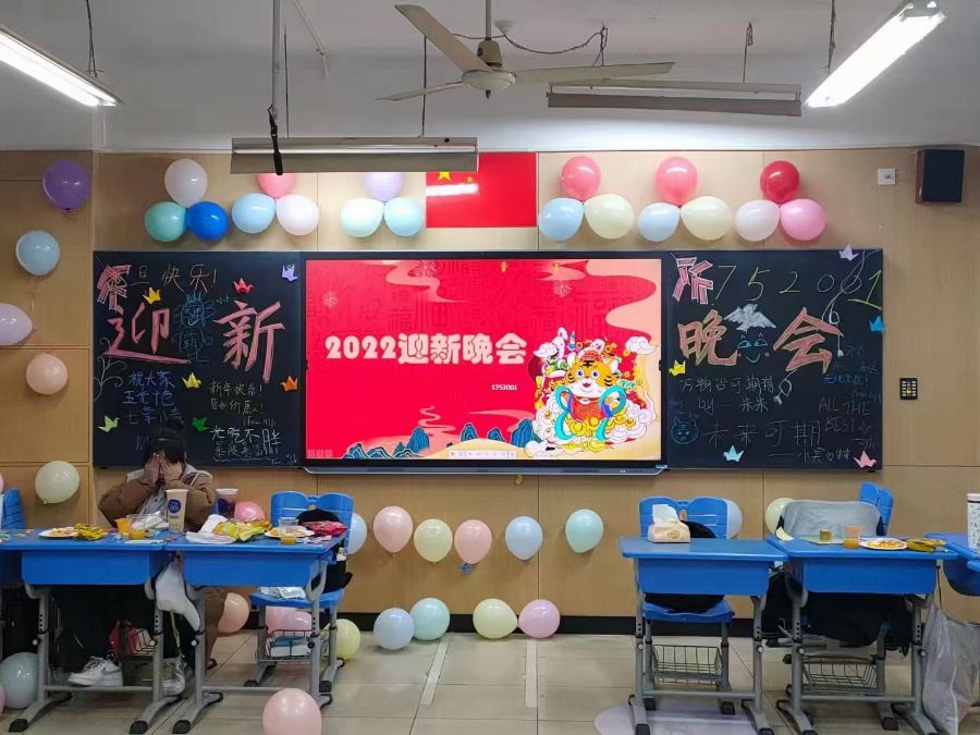 晚会正式开始,我与班长周圣凯同学主持这次的班级晚会,首先,我们进行了总结表扬的环节,请班主任为班级中表现优异的同学颁发奖励以示鼓励。接着是赠送礼物的环节,我们将一张包含我们班级30位同学和班主任的照片融合在了一起,赠送给了班主任以作纪念。然后就是班级同学的才艺展示,大家在欢声笑语中度过了这段时光,我们还进行了中场过度的小游戏。晚会的尾声我们展看了迎新的视频。最后让班级每一位同学在纸上写下自己对2022年的期望,折成一个纸飞机,同时向外飞去,希望大家的愿望与期望都能实现!