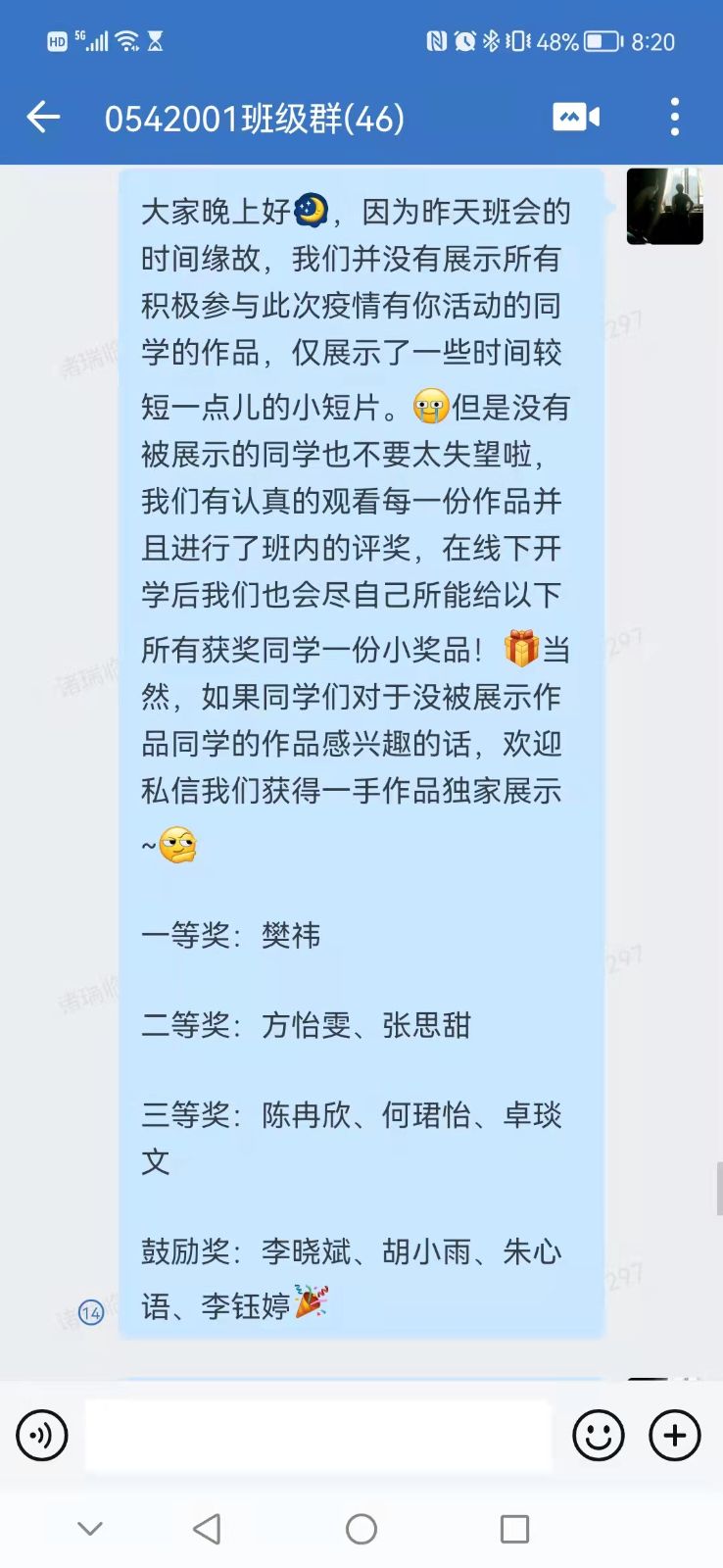 最近,0542001的团支部&文艺委员联合组织了一个超级有趣的中小型线上才艺&生活展示活动——“疫情有你”诚邀同学们利用空余时间展示自己的快乐日常&各类才艺