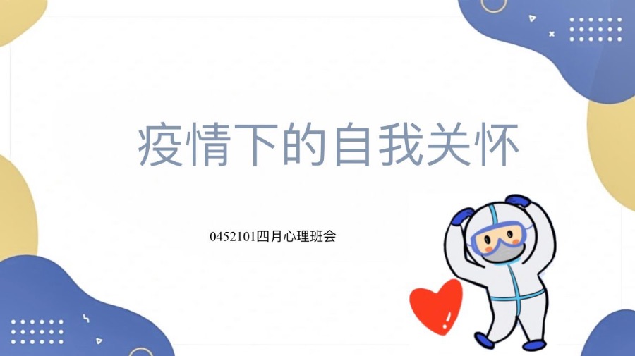 这次心理班会的主题是《疫情下的自我关怀》其中告诉我们“蝴蝶拍”技术是一个心理减压技术,通过这个动作我们可以慢慢安慰自己,在负面情绪持续过长时要学会向他人寻求帮助!