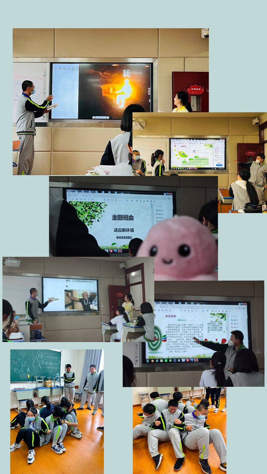 第6周我们在班会课上讲的主题是:适应新环境。当中提到了一些典型案例还有一些缓解方法以及学生现状。