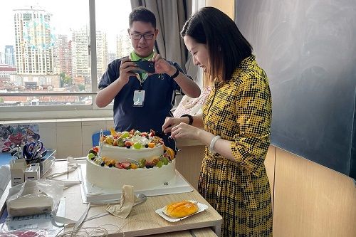 1、送礼物,班主任陆瑞雯老师给4-6月份生日的同学送上礼物盒。