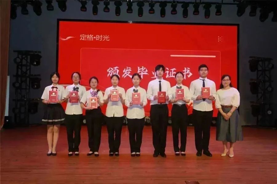 中职三年的点滴温暖在大屏幕上缓缓流淌——图书馆的特色值星合影、体育场上的汗水涔涔、舞台上的曼妙舞姿、领奖台上的笑靥如花……一起走过的日子在光影中再次回放。