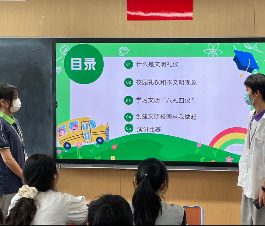 9.21开展了班会课!其中包括文明校园的的主题ppt和班级内的同学们进行文明校园的演讲比赛
