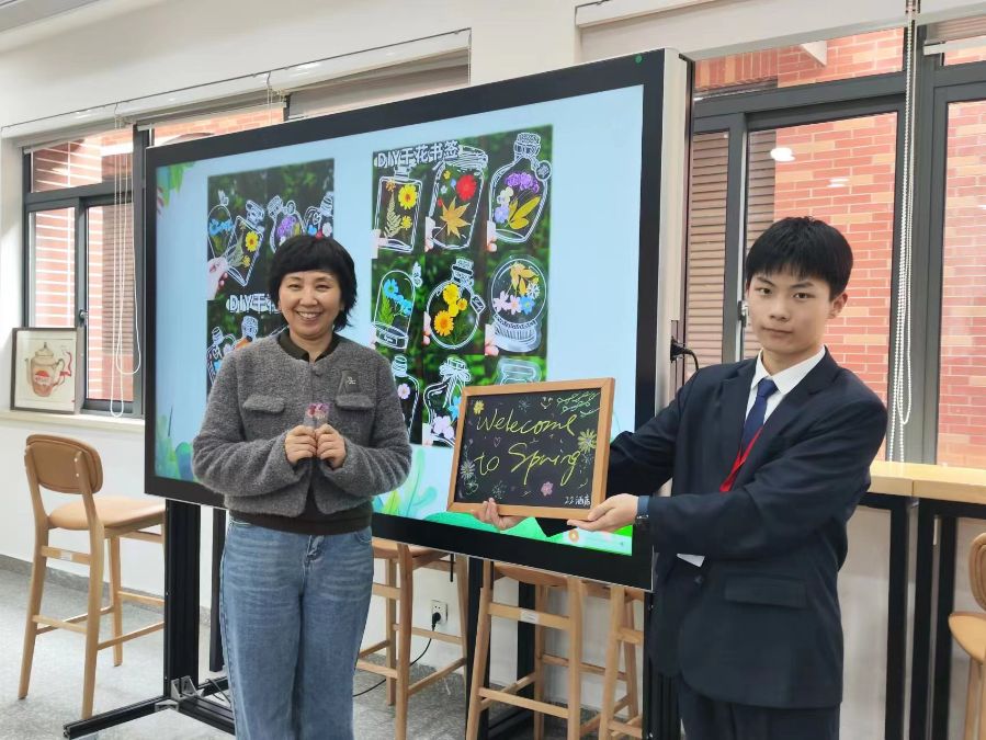 随后李静轩同学又向大家详细地讲解了本次干花书签的制作步骤,最后由庄稼、奚嘉雯、陈怡蕾、范雨辰、