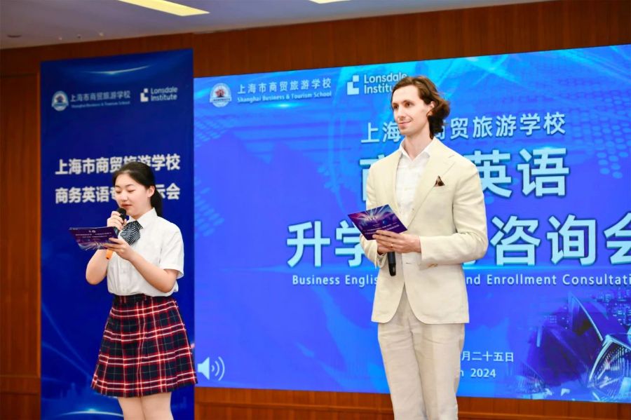 澳大利亚贸易投资委员会大中华区商务领事Stephanie Smith,上海中小学博雅教育研究所副所长刘岚等出席活动。澳大利亚朗斯代尔学院CEO Gil Polglase为商务英语专业学生颁发英语等级证书。
