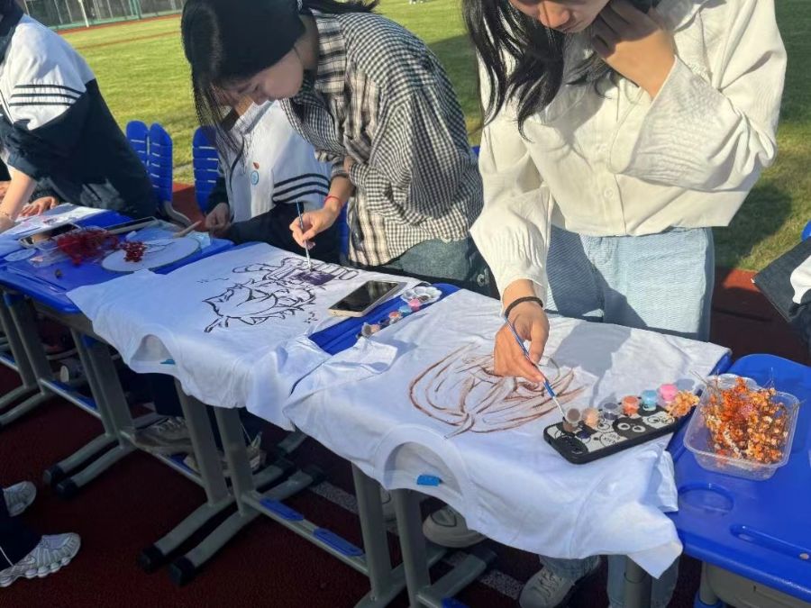 “手绘心声”活动以手绘为载体,鼓励学生通过艺术创作来表达内心情感、释放学习生活中的压力。同学们尽情挥洒创意,将青春的困惑和对未来的展望诉诸笔端。活动现场气氛热烈,色彩斑斓的手绘作品点缀在操场上,为整个校园增添了一抹亮丽的色彩。