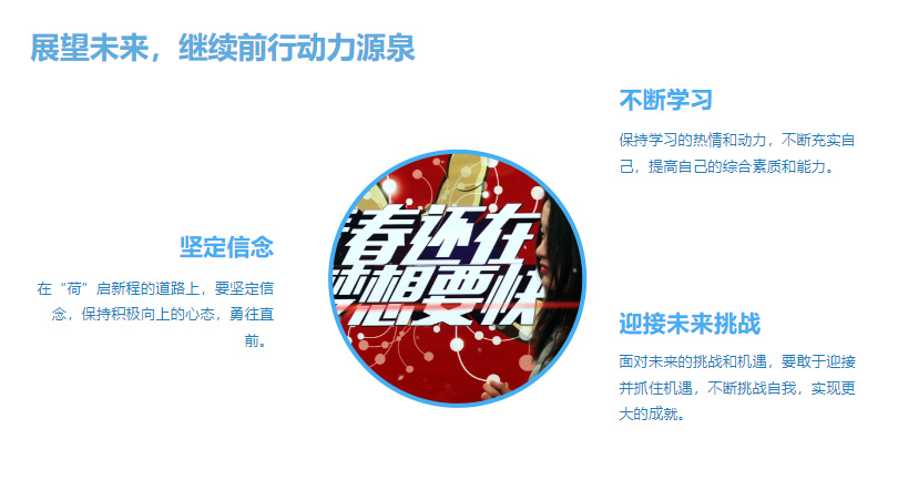 在“荷”启新程中,通过不断学习和努力,实现自己的个人价值和梦想。将个人所学和所能运用到社会中,为社会做出贡献,实现个人价值与社会价值的统一。在追求个人价值的同时,也要关注社会价值,树立正确的价值观和人生观。