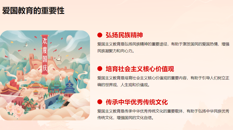 爱国教育,是心灵的灯塔,照亮我们前行的方向。它不仅仅是书本上的知识,更是融入我们血液、刻入骨髓的情感。在这片古老而又年轻的土地上,每一份耕耘都承载着对国家的深情厚谊,每一次奋斗都闪耀着爱国的光芒。