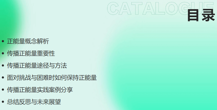学会传播正能量,是点亮生活光芒的钥匙。在纷扰的世界中,让我们成为那一抹温暖的光,用微笑和鼓励驱散阴霾,用积极和乐观感染他人。每一次善意的传递,都是对美好世界的贡献;每一句正能量的话语,都能激发内心的力量。让我们携手同行,在生活的每一个角落播撒爱与希望,共同营造一个更加温馨、和谐的社会。同学们请记住,你的每一次正能量传播,都可能成为他人生命中不可或缺的光芒。