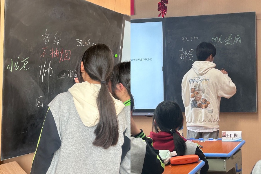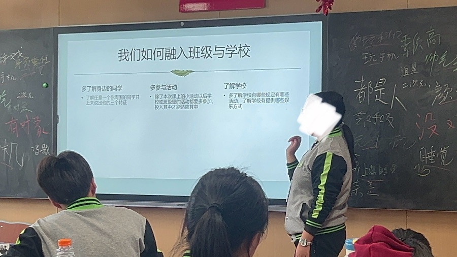 今天我们开展了一次让同学们互相了解的班会课 每个人都是不同的存在 在学校里发挥发展自己的特色 拥有自己独有的美丽 在班级中同学们互相了解了一个月 大家都对不同的同学有了不同的印象!