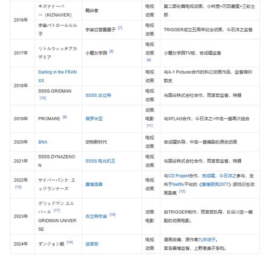 日本的一家进行动画企划和制作的公司TRIGGER,日本新晋的一家进行动画企划和制作的公司。 [1]由从著名动画公司GAINAX退社的三名核心人员大冢雅彦、今石洋之、舛本和也三人于2011年8月22日成立。 [2]
