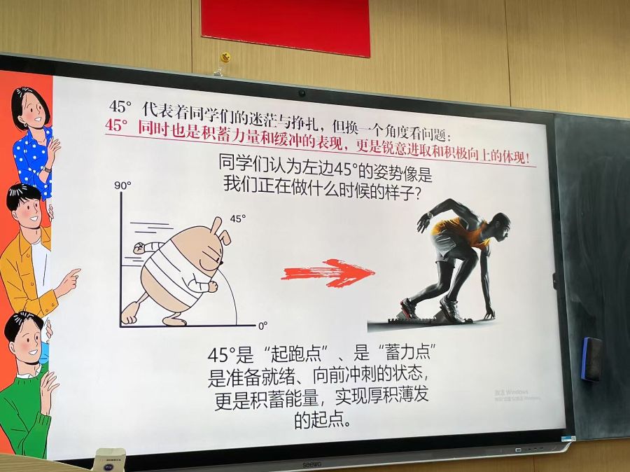 1、同学们认为左边45°的姿势像是我们正在做什么时候的样子?