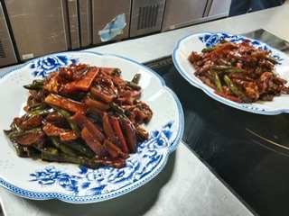 今天中烹课的实操太爽了!围着灶台颠勺时,油花裹着酱汁“滋啦”一响,豆角的脆香、肉条的焦香瞬间裹满整锅。盯着糖色从浅黄熬到琥珀色,把焯好的料一股脑倒进去翻匀——裹满亮红油亮酱汁的烧菜往青花瓷盘里一盛,后厨的不锈钢台面还沾着灶边的烟火气。