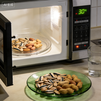 ·  坚果防潮回脆过年买的瓜子、花生受潮变软,放进微波炉,中高火加热30 秒,拿出来摊凉,就能恢复酥脆口感;也可以放进烤箱,100℃烤 5 分钟。
