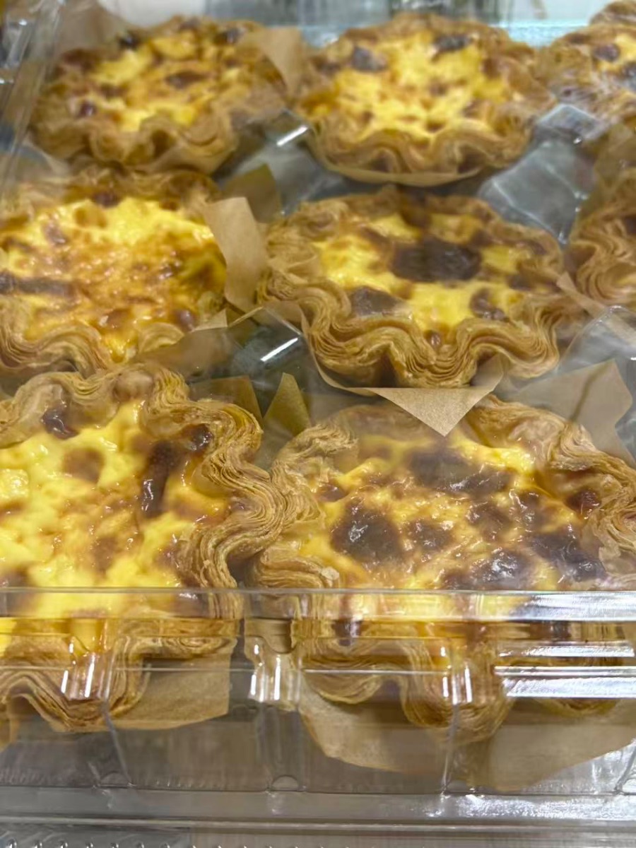 趁热拿起一个,还有些烫手。酥皮层层叠叠,轻轻一碰就掉渣。咬下去,先是“咔哧”一声脆响,接着温热的内馅涌出来——嫩滑得像布丁,甜度恰到好处,在舌尖轻轻化开。酥脆与绵软在口中交织,每一口都是满足。