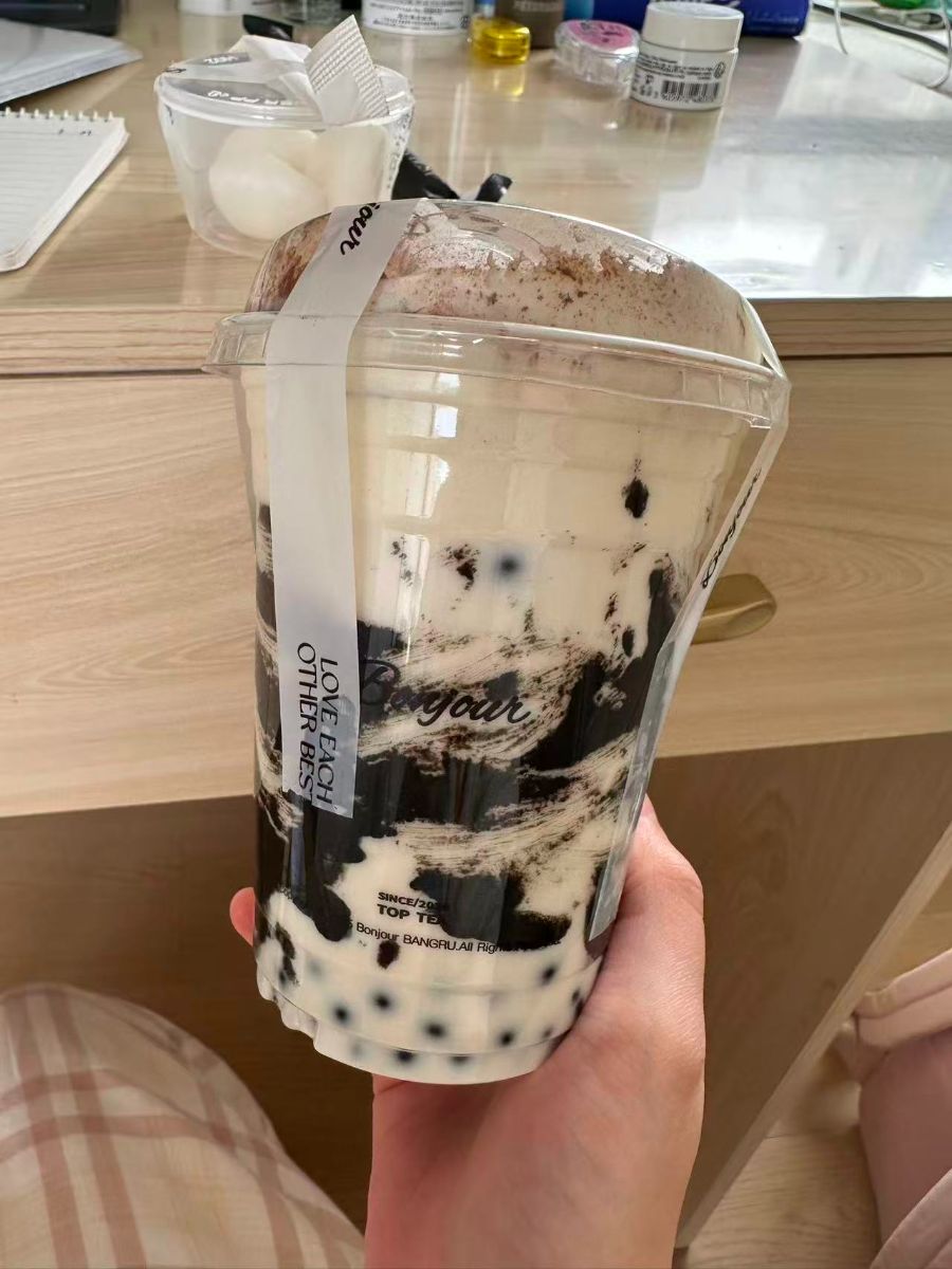 周末本来想奖励自己一杯好喝的奶茶,结果踩了大雷!手里这杯纯奶黑芝麻奶茶,颜值看着还挺不错,黑白相间的纹理像水墨画,珍珠藏在杯底,看着就让人有食欲,可第一口下去就直接破防了。浓郁的黑芝麻味糊在喉咙里,甜腻又发苦,纯奶的清爽完全被掩盖,喝到后面还有种黏糊糊的口感,珍珠也没什么嚼劲,全程都在被黑芝麻的厚重味“支配”。本来想靠奶茶治愈心情,结果越喝越郁闷,喝了几口就实在喝不下去了,只能放在一边。看来不是所有黑芝麻口味的饮品都好喝啊,这次的奶茶直接成了我周末最“失败”的一次犒劳,下次再也不敢随便点这种口味了!