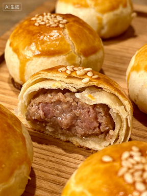 • 核心亮点:不是甜月饼!酥皮层层掉渣,内馅是新鲜猪肉加肉皮冻,烤后汁水饱满,咸香浓郁,一年四季都能买到。