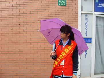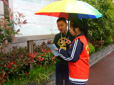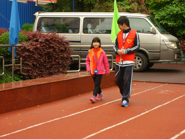 小朋友体验结束了,“志愿者姐姐,我妈妈在哪里?”“走,姐姐带你去!”通往食堂的路上,一把把雨伞,五彩缤纷,描绘着大朋友与小朋友间爱的油画。他们因小朋友的天真而快乐,更因家长寄予的信任而欣慰。