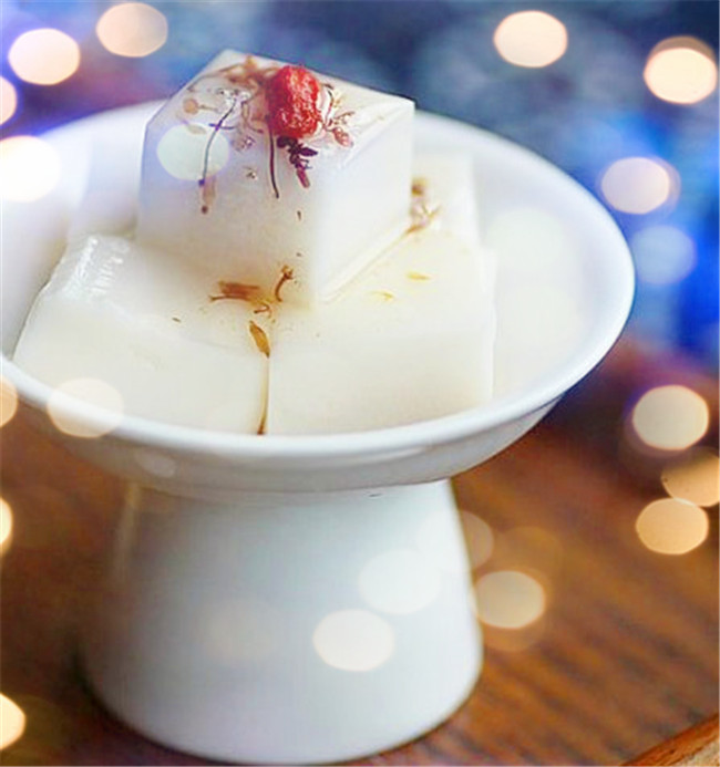 汉族传统名点之一,用杏仁与琼脂加工而成。入口滑腻,芳香。