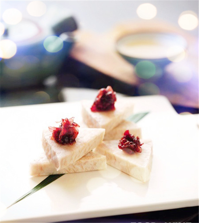 云南特色甜品,甜蜜中不乏清香。老玫瑰糖是云南传统的美食调味料,它用新鲜玫瑰通过云南传统手法腌制,年头越陈越香,是这道甜品的灵魂。