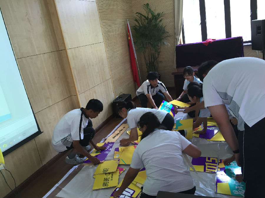 拼图环节就更不用说了,十位同学组成了拼图战队,用4分钟完成了拼图,看着大家团结起来而完成的成果,每个人脸上都洋溢着胜利的笑容。