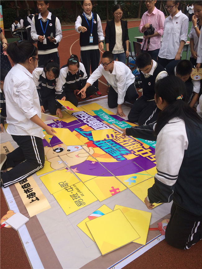 活动现场,有工作人员扮演的易班小熊不停的在操场上走来走去与同学们合影,还有多种趣味小游戏,例如:易班熊拼图大作战、蒙眼带球、一分钟吸管转移乒乓球等。同学们都积极参与到现场的小游戏中,在收获奖品的同时也收获到了欢笑和友谊。