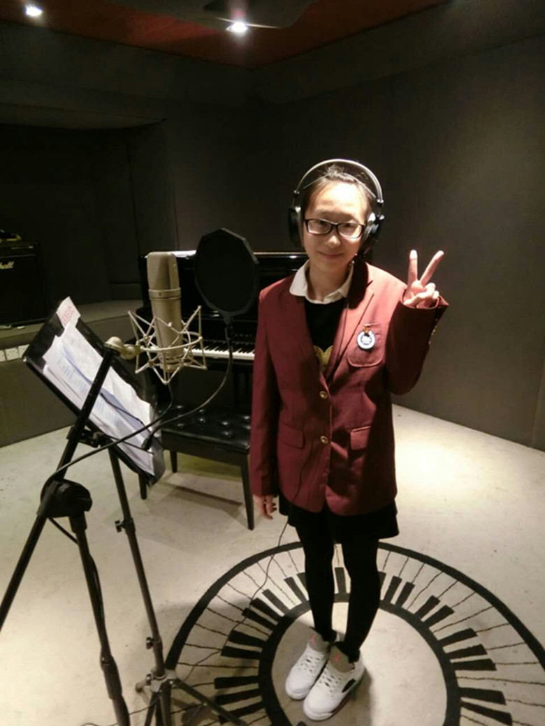 来自交通路校区的决赛选手汪燕妮说:“人生的第一次!超级棒的录音棚!”